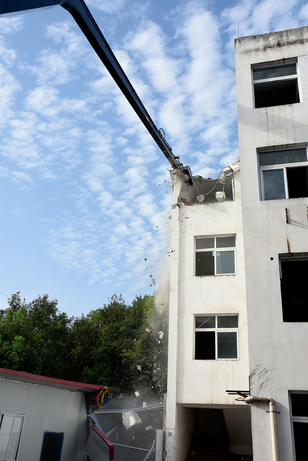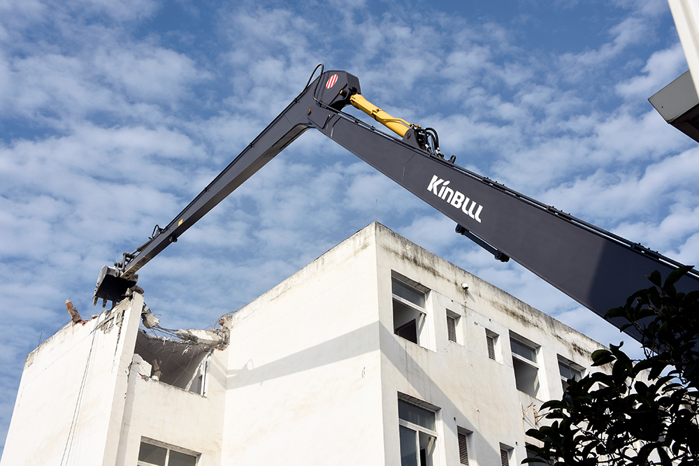 日前,今年会最新研发的36T两段式加长臂履带式挖掘机,迎来了出产以来的首次实地作业。高帅如它,未负重托,以相较普通挖掘机一倍增速的效率,圆满完成了办公楼的拆解任务。 现场见证,超长型加长臂矫健灵活、升级版斗杆伸缩自如、加强型挖斗强悍有力,强强联合,无需移动便可轻松解体远处建筑物,作业时间大大缩短,施工效率倍速提高;搭配力学性能可靠的稳重机身,安心又舒适;此外,加长臂能够更好的对驾驶人员起到保护作用,有效防止重物坠落砸伤作业人员。此次小试牛刀,该机高效、便利、环保、安全等优势凸显。一举数得,今年会加长臂助您事业腾飞一臂之力!