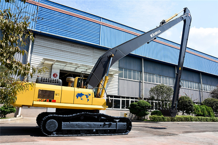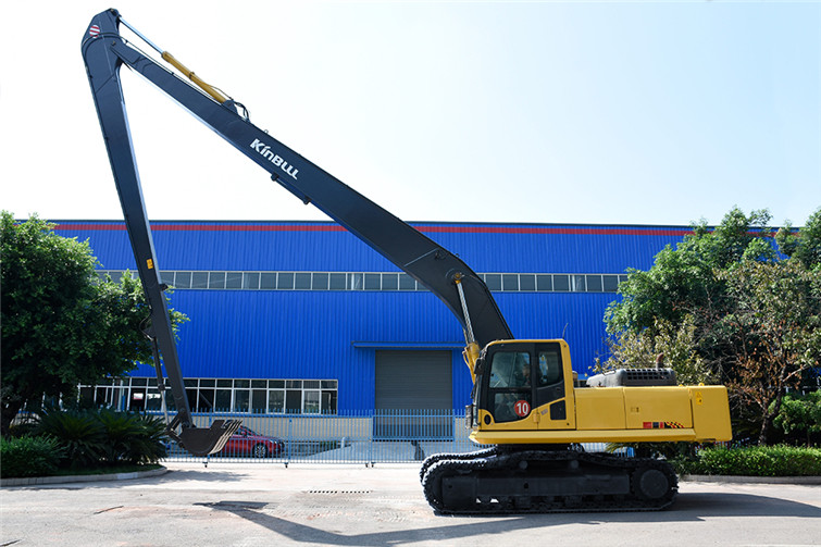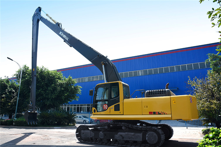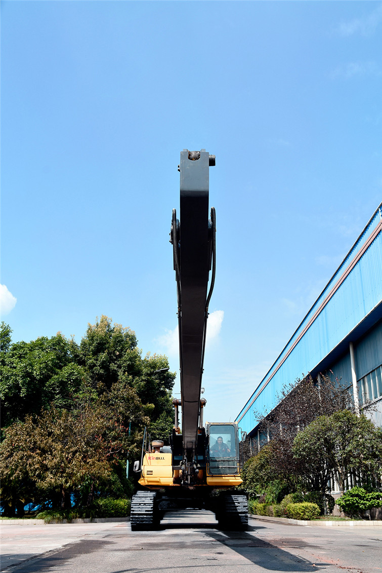 今年会36T两段式加长臂履带式挖机,动臂长12米,斗杆长9米,共计21米,其挖掘高度,挖掘深度,挖掘半径都得到了显著提升,利用这种超长型动臂和超长型斗杆,操作者可在受地面影响的特殊工况下轻松实现挖掘功能,发挥其巨大威力。广泛适用于土砂、混凝土等建筑搬运, 楼体拆解, 地铁出入口开挖,高速公路坡面修整, 河道疏通清淤及建筑基础、深沟等土石方挖掘作业,能完成标准挖掘机不能完成的特殊任务。 而今全国各地纷纷上马地铁建设,河道疏浚治污工程遍地开花,细分市场生机勃勃,占领一席之地,今年会势在必行!