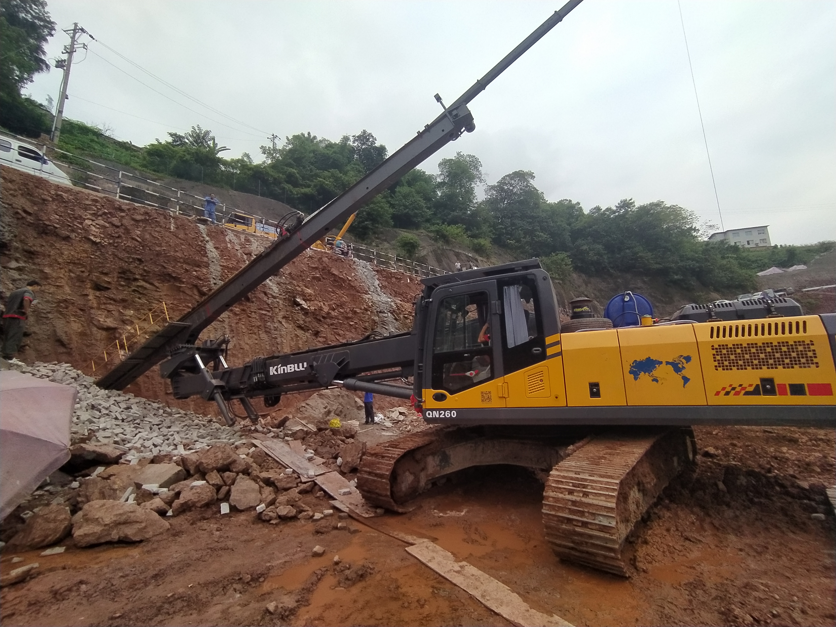 近日我司QN260锚杆钻机在重庆云篆山房产项目中投入使用,进行边坡锚固,以其效率高、噪音低、操作方便省时的特点,受到现场施工方的称赞,纷纷表示有这么方便的设备,再也不想回到以前手工钻加脚手钻的低效率工作方式了,果然是