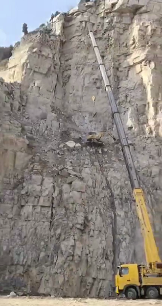大家都知道,挖掘机作业的环境是十分多变的,所以也是一件具有危险性的事,因为家庭的压力以及高薪的诱惑,许多人也会因此选择高难度的作业环境。可以看到,地面上的吊车将一辆挖掘机吊起在半空中进行排险作业,而挖掘机的行走部